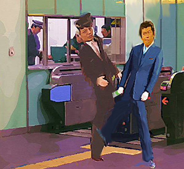 改札付近にいた駅員が自動改札機にタッチするよう注意したところ、キャリア官僚はいきなりその駅員を蹴りつけた。